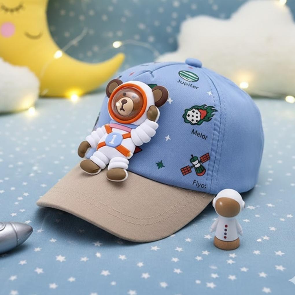 Let your little explorer step into a world of imagination with the AstroBuddy 3D Bear Kids Cap. Designed with a charming astronaut bear in a space suit, this premium kids’ baseball cap blends comfort, protection, and playful style.