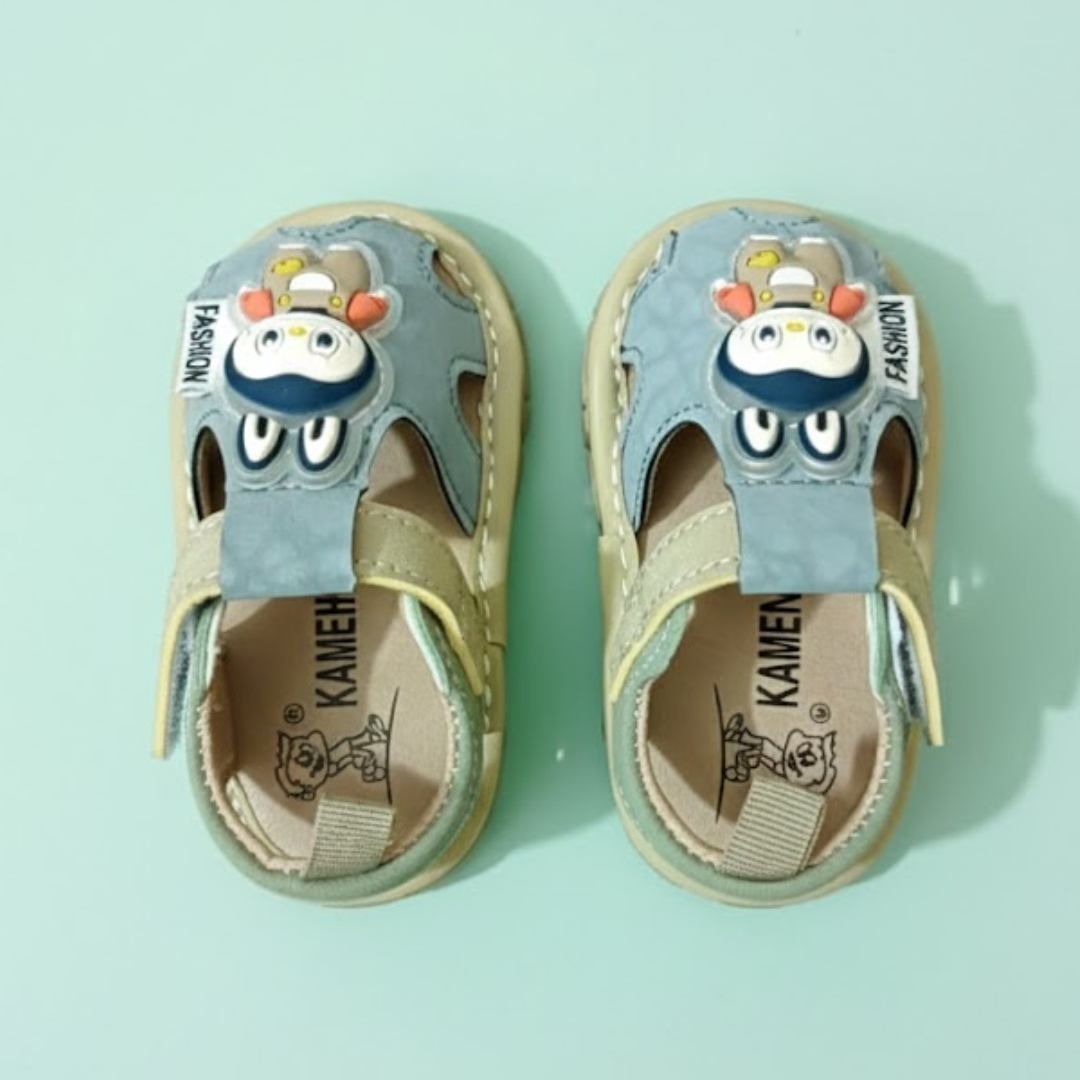 These unisex baby sandals are designed to keep little feet comfortable, secure, and happy. Crafted in a grey and beige color combination, they feature an open-toe, breathable design with side cutouts for airflow. The soft synthetic material, adjustable velcro straps, and non-slip sole support easy movement and early walking. The cute cartoon character with light feature adds fun and excitement for everyday wear.
