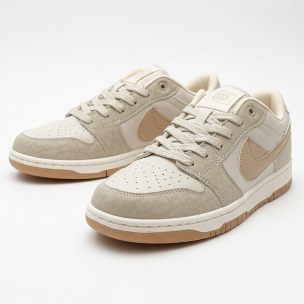Elevate your sneaker rotation with the BEIGE Fleece Court Low – Metallic Gold Edition, a premium take on the classic low-top silhouette. Crafted with a soft, fleece-textured upper, this pair combines a smooth off-white base with subtle Sanddrift beige overlays for a refined, textured look.