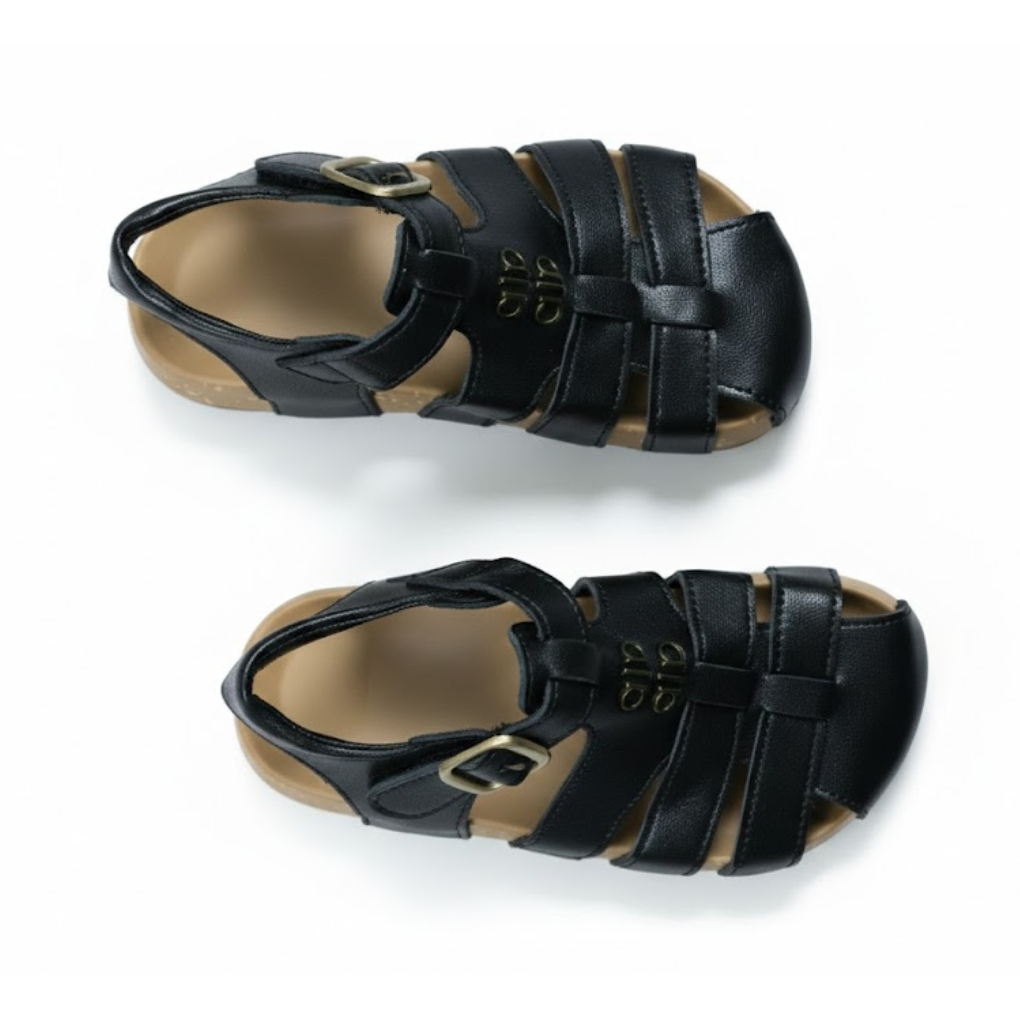 Durable, breathable, and designed for all-day comfort — this Boys Comfort Fisherman Sandal in black is perfect for active kids. Made with premium artificial leather (imported from China), it features classic fisherman-style cut-outs for airflow and protection. The adjustable buckle with hidden elastic ensures a secure fit, while the very soft rubber sole provides excellent grip and flexibility. Ideal for school, outdoor play, travel, and everyday wear.
