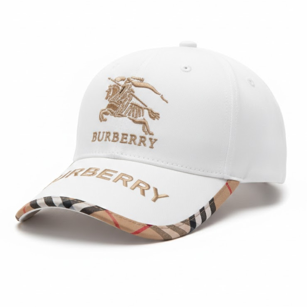 A symbol of timeless British luxury, the Burberry Signature Check Baseball Cap – White Heritage Edition delivers refined elegance with iconic detailing. Crafted in a clean white tone, this cap is elevated by Burberry’s instantly recognizable check pattern on the underside of the brim—adding a subtle statement of heritage and sophistication.