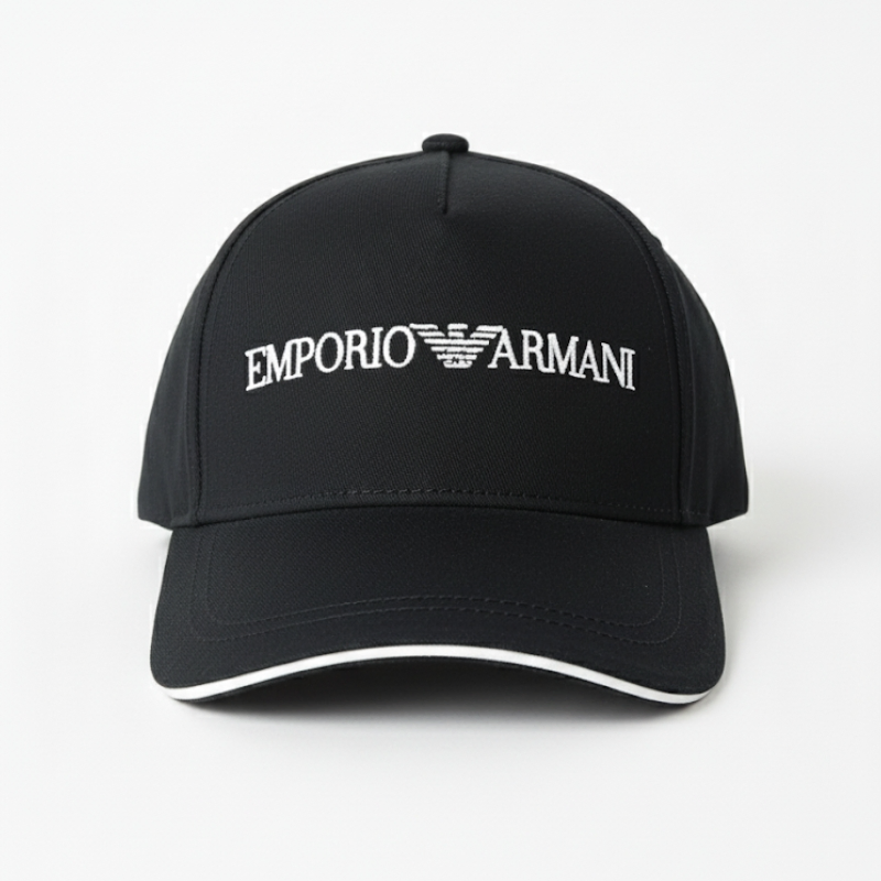 This premium-quality Emporio Armani cap is an original export product, ensuring authentic design and craftsmanship. It features a versatile free size fit, making it comfortable for anyone. The cap comes in a striking black color, as shown in the product images.