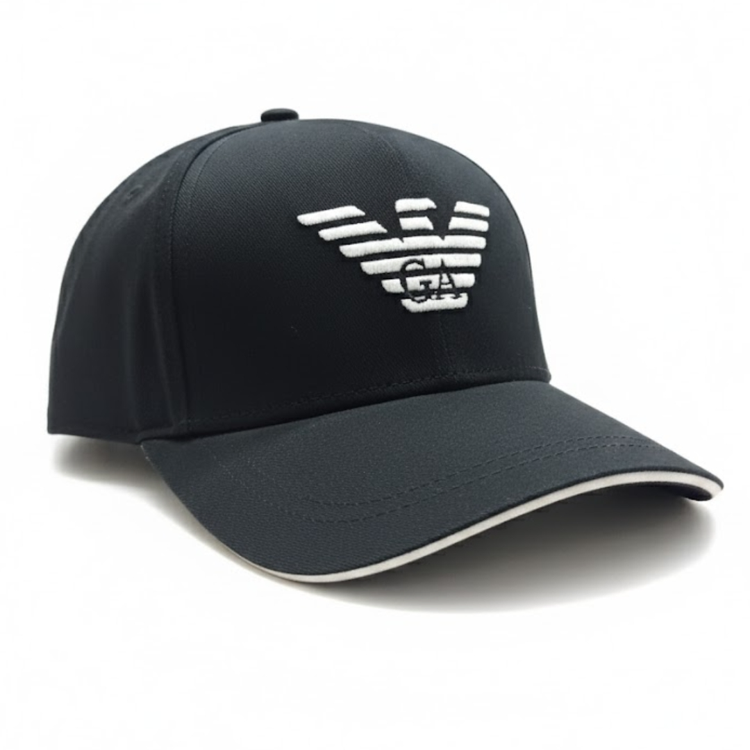 The Emporio Armani Black Logo-Print Cotton Cap combines luxury and comfort in a timeless design. Made from premium cotton with the signature Armani logo print, it’s perfect for refined casual wear.