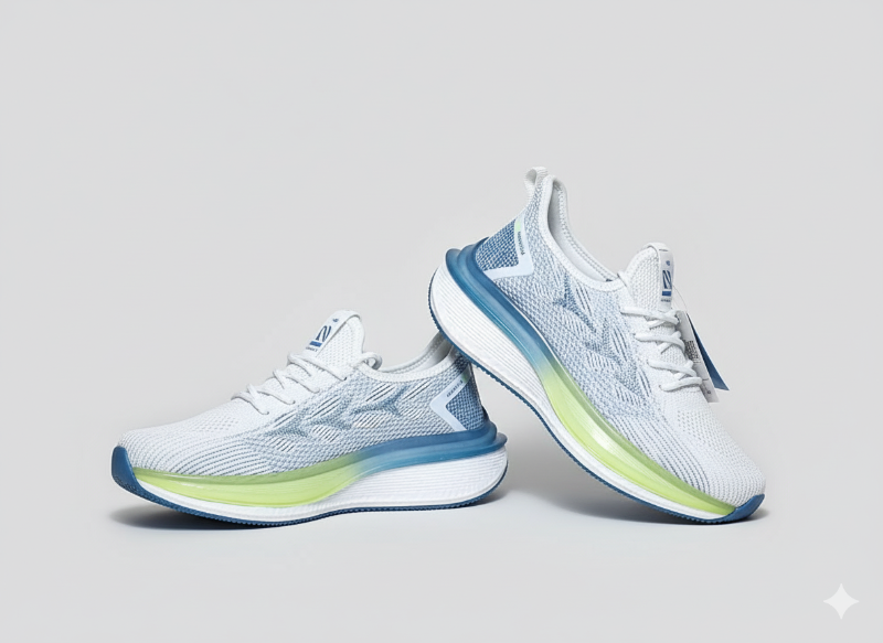 Step into effortless performance with our EvoGlide Infinity Runners. These premium, imported shoes feature a sophisticated white and light blue breathable knit upper, providing a seamless and supportive fit. The design is highlighted by a distinctive, two-tone gradient sole that transitions from a vibrant, energetic lime green to a calming, deep blue. This unique sole is engineered for superior cushioning and energy return, making every stride feel incredibly light and responsive. Perfect for serious runners and style-conscious individuals alike, the EvoGlide Infinity Runners deliver a fusion of advanced technology and clean, modern aesthetics.