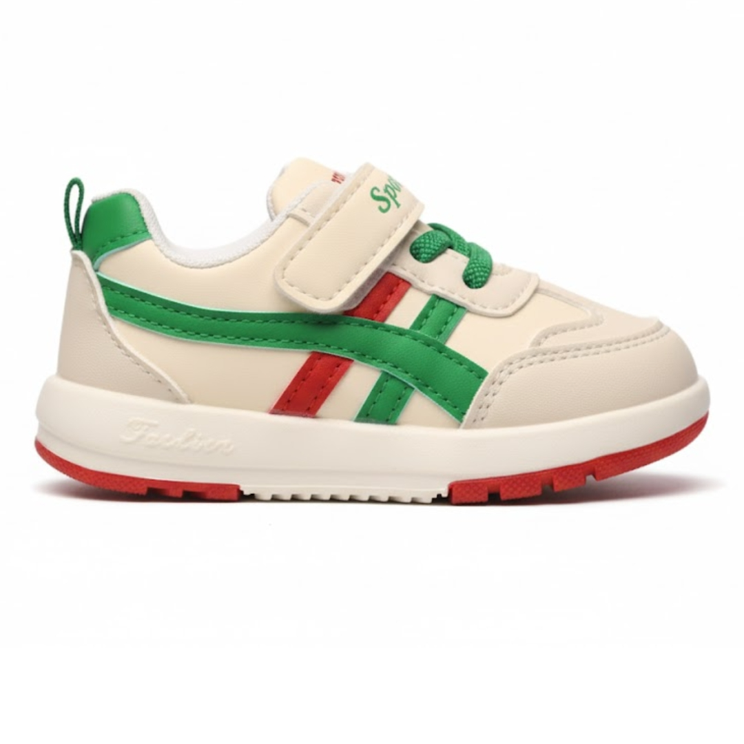 Step into fun with these Go Green Toddler Sneakers! Featuring a light-colored body with vibrant green laces, side stripes, and a green “Sport” logo on the velcro strap, these sneakers are perfect for little adventurers. Easy to wear, comfortable, and designed for active toddlers, they keep tiny feet supported and playful all day long.