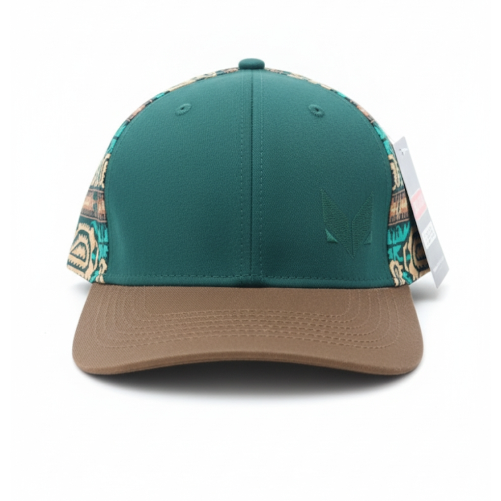 Add a bold twist to your casual outfit with this Green & Brown Baseball Cap featuring vibrant tribal-inspired side panels. The deep green crown with a subtle logo embroidery blends seamlessly with the earthy brown brim, while the colorful patterned sides bring a touch of individuality and culture. Designed with durable fabric and an adjustable strap for a free-size fit, this cap is perfect for everyday wear with a stylish edge.