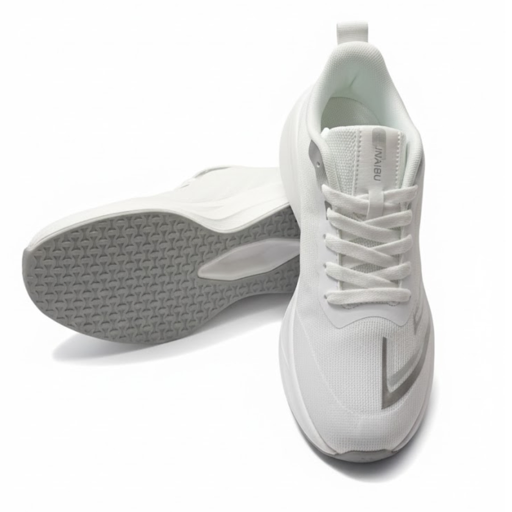 Step into refined performance with the JINNAIBO Premium Athletic Running Shoes in White with elegant silver accents. Designed for a clean, modern look, these shoes feature a smooth white upper highlighted by reflective metallic silver detailing on the sides and tongue logo. Built with a lightweight structure and a cushioned sole, they deliver exceptional softness and all-day comfort. Perfect for running, training, or everyday wear, JINNAIBO blends premium craftsmanship with sporty style to give you a confident, elevated footwear experience.