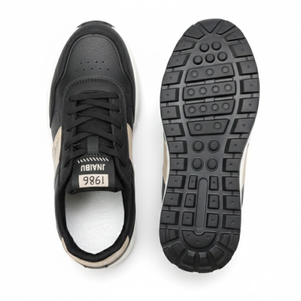 Step into luxury with the JNAIBU Retro Running Sneakers, a super-premium footwear experience crafted for style and comfort. Featuring a sleek black upper with smooth leather or high-quality synthetic material, a crisp white sole, and a striking metallic gold accent, these sneakers deliver a bold, classic look. Designed with a retro running silhouette, they are incredibly lightweight and offer unmatched softness, making every step feel effortless. Engineered for all-day comfort without compromising on style, JNAIBU ensures that you experience true premium quality in every detail. Perfect for casual wear, street style, or standout athleisure looks.