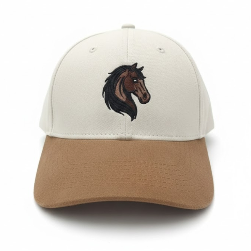 Experience timeless elegance with this Limited Edition Two-Tone Horse Logo Baseball Cap, meticulously crafted for style and versatility. The cap features a premium off-white crown paired with a rich brown suede-like brim, creating a sophisticated contrast. At the forefront, a dark brown embroidered horse head logo adds a touch of classic equestrian charm. Made from durable polyester fiber, this unisex cap offers an adjustable fit—likely via a snapback closure—ensuring comfort for all-day wear. Perfect for travel, outdoor activities, or elevating casual outfits, this cap is a statement piece for collectors and fashion enthusiasts alike.