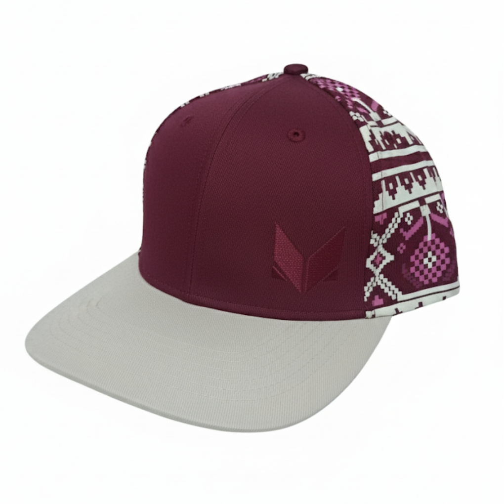 Celebrate heritage in style with this exclusive Snapback Cap featuring a traditional Jamdani-inspired design. Crafted in a rich maroon (deep reddish-purple) shade, the cap blends timeless cultural artistry with modern streetwear appeal. The structured snapback fit ensures durability and comfort, while the adjustable closure provides a perfect free-size fit. A unique fusion of fashion and tradition—ideal for those who want to stand out with elegance.
