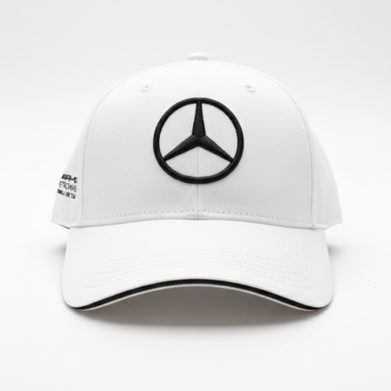 This premium-quality Mercedes-Benz cap is an original export product, ensuring authentic design and superior craftsmanship. It features a versatile free size fit, making it comfortable for anyone. The cap comes in a pristine white color, as shown in the product images.