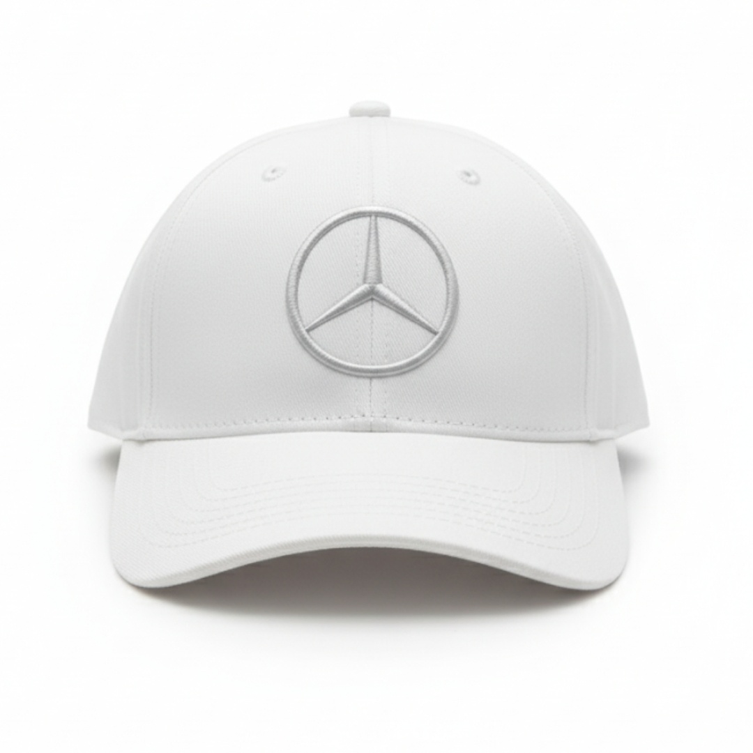 Show off your premium style with the Mercedes-Benz White Cotton Baseball Cap. Crafted from soft, high-quality cotton, this cap offers all-day comfort and durability. The crisp white base is elegantly complemented by the silver embroidered Mercedes-Benz star logo on the front, exuding sophistication and luxury. Featuring an adjustable strap, this cap ensures a perfect fit, making it ideal for casual outings, sports, or stylish streetwear. Add a touch of automotive prestige to your everyday wardrobe.