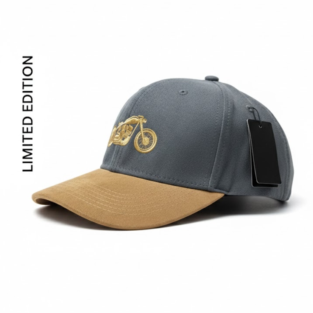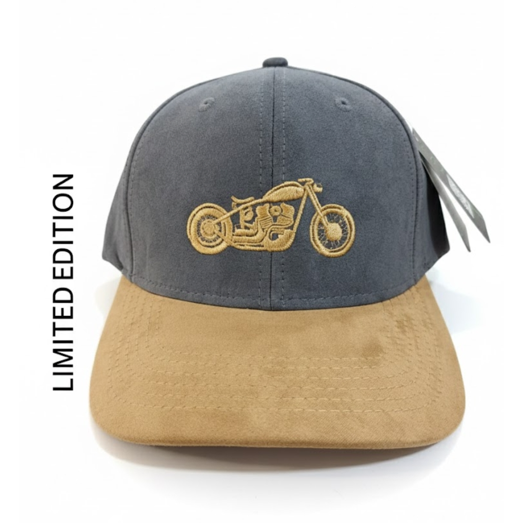 Ride with confidence and style in the One Trade Bikers Special Edition Snapback Cap—a limited-edition luxury piece made for true bikers and premium streetwear lovers. This exclusive cap features a dark grey suede crown with a contrasting tan/light brown brim, delivering a bold yet refined biker aesthetic.