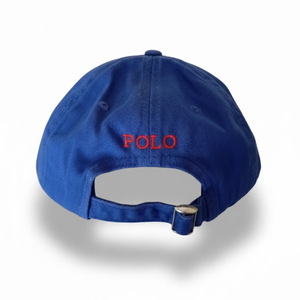 The vibrant royal blue color is highlighted by the iconic red embroidered Polo Pony, giving it a bold and classic look. Designed with a curved brim and an adjustable strap with buckle closure, it ensures a secure and personalized fit for all-day wear.