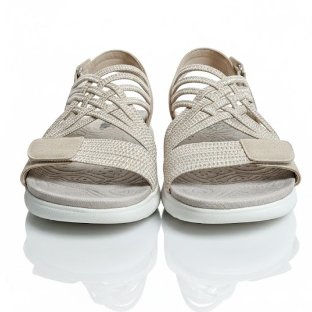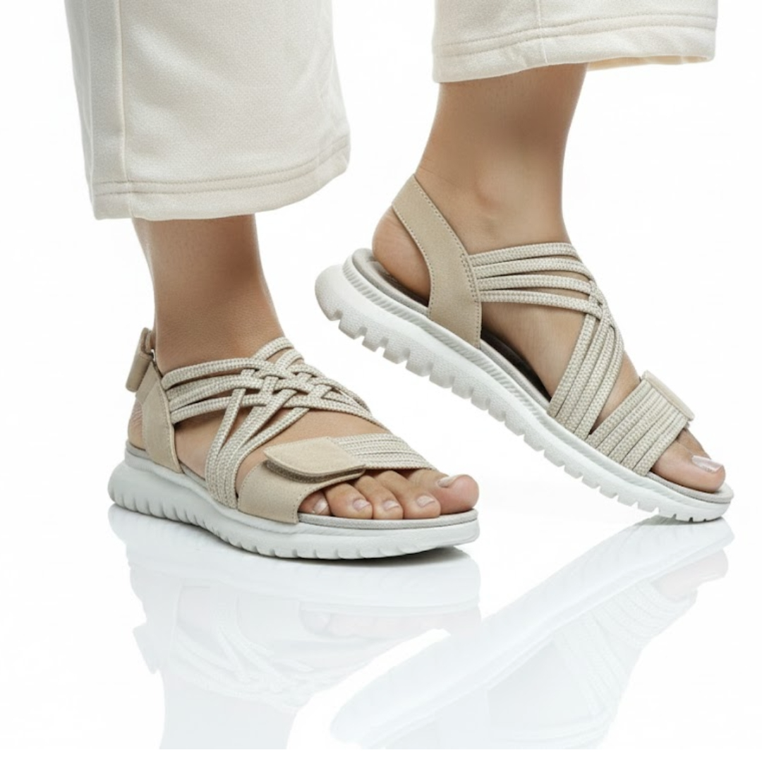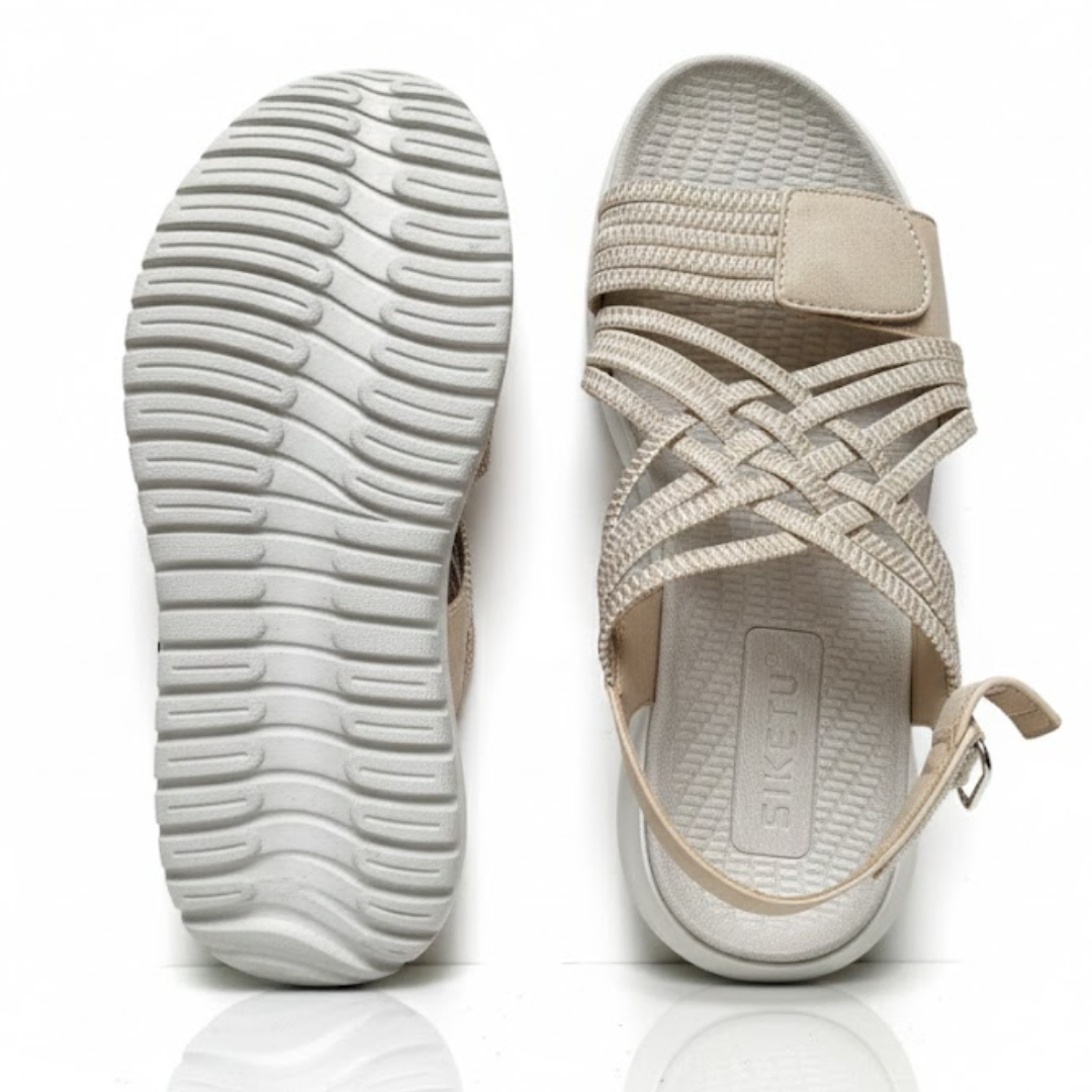 Designed for effortless comfort and modern simplicity, the Siketu Comfort Weave Sandals are perfect for everyday wear. Finished in a soft ice-beige tone, these sandals feature interwoven fabric straps that gently secure the foot while allowing natural movement.