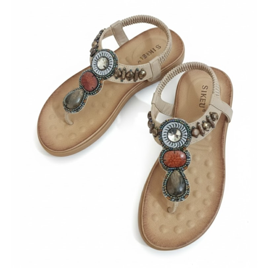 From wedge heels and classic flats to thong, T-strap, slingback, and gladiator styles, each design reflects modern femininity with thoughtful detailing. Selected styles feature beaded embellishments, rhinestones, or elegant embroidery, adding a refined decorative touch.