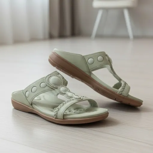 Add a pop of color to your outfit with the SIKETU Women’s Flat Sandals in a refreshing green shade. Designed with a cushioned footbed and adjustable ankle straps, these sandals provide a perfect, comfortable fit for all-day wear. The elegant T-strap design combines style and functionality, while the lightweight and breathable materials ensure ease during casual outings, shopping, or daily activities. The durable rubber outsole offers excellent grip for safe and confident steps.