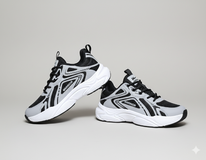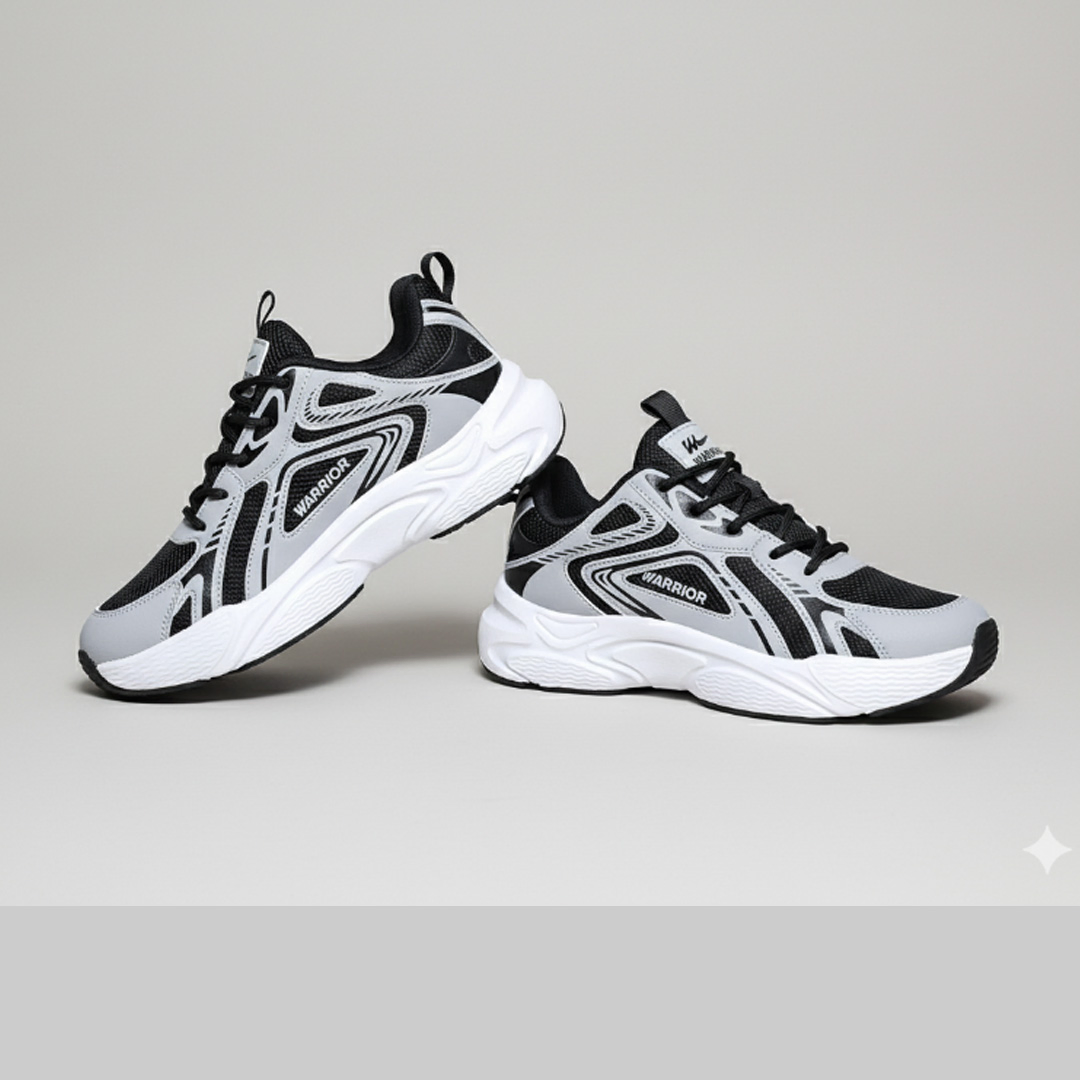 Navigate the city streets with confidence and style in our Urban Commuter Lifestyle Sneakers. These imported, premium shoes feature a modern multi-layered upper in sleek shades of grey and black, accented with a bold "WARRIOR" logo. The design blends durable synthetic panels with breathable mesh for all-day comfort. The chunky white sole not only adds a trendy aesthetic but also provides superior cushioning and support, ensuring a smooth and comfortable stride on any surface. Perfect for your daily commute, casual outings, or a night out, the Urban Commuter sneakers are the ideal blend of function and urban flair.