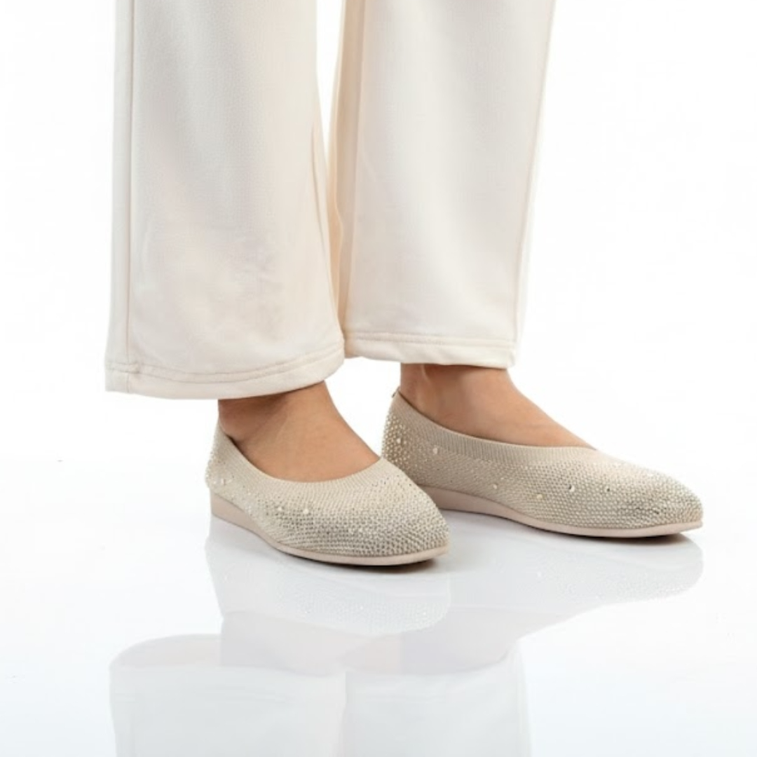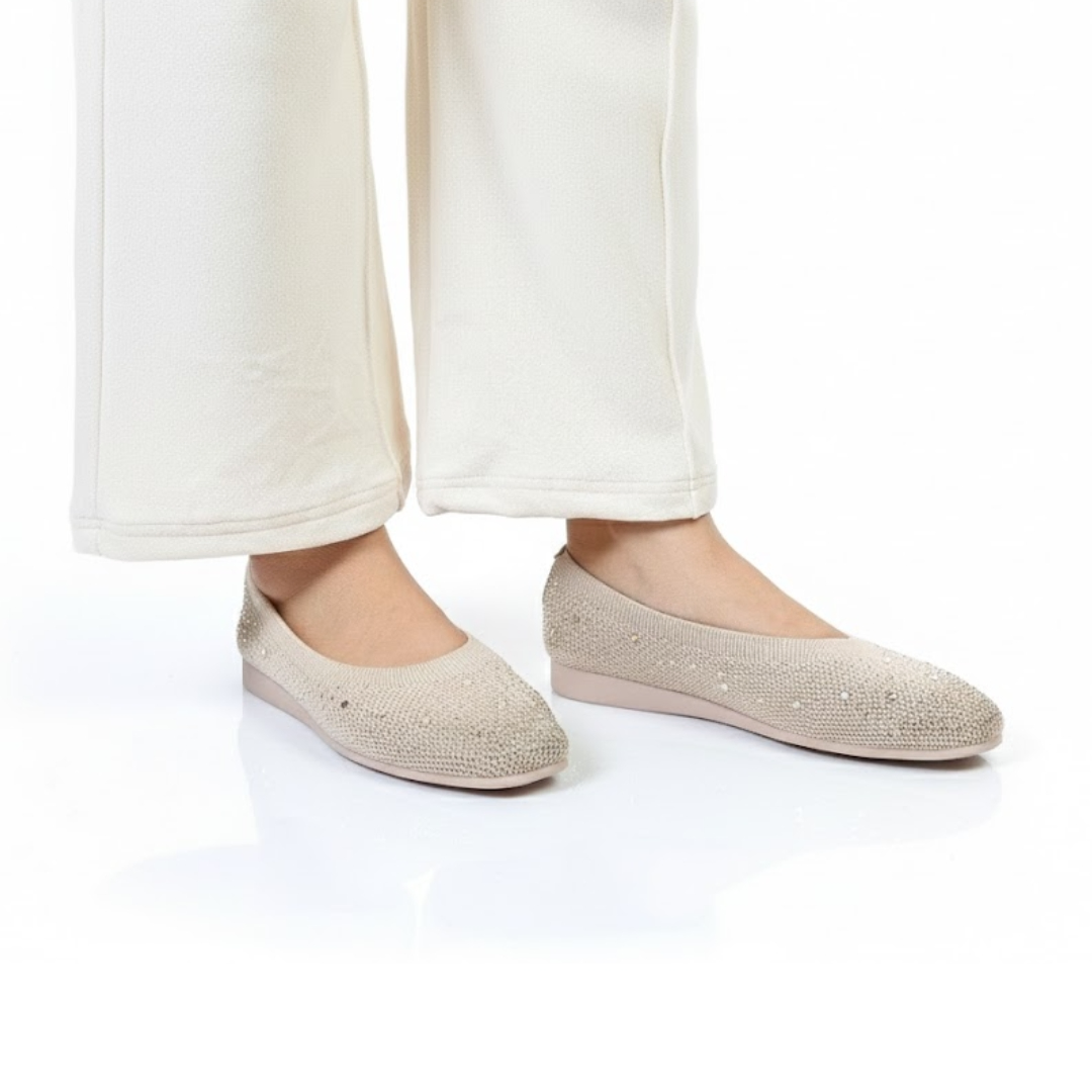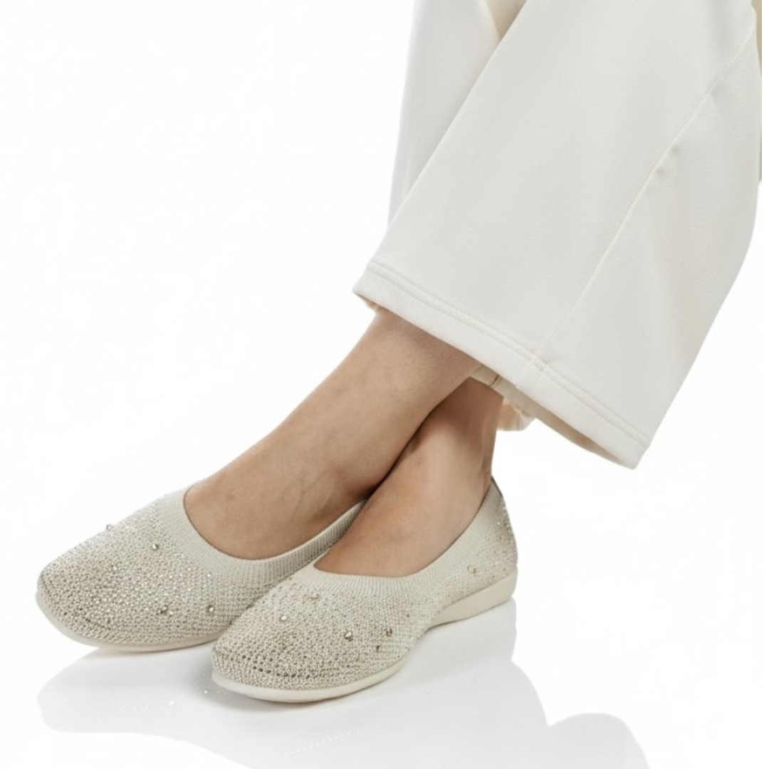 Soft elegance meets everyday comfort with the Lumière Knit Crystal Flats. Designed in a graceful ivory-beige tone, these women’s slip-on flats feature a breathable knit upper that gently adapts to your feet for a relaxed, flexible fit.
