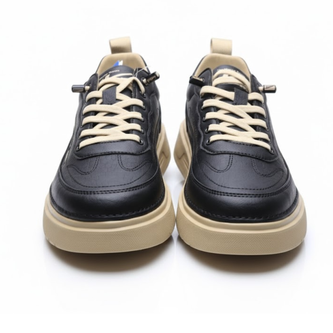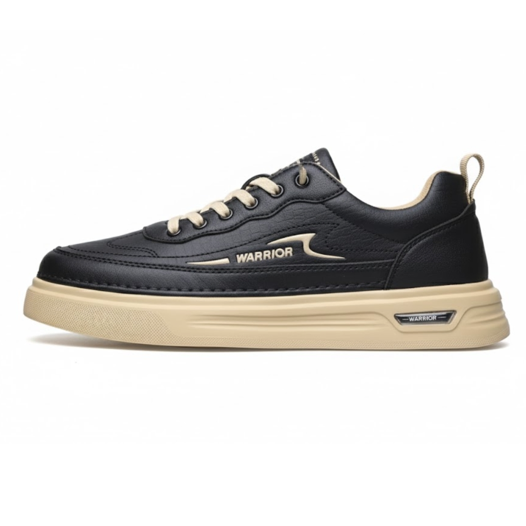 Redefine casual elegance with the Warrior Black & Beige Sneakers, crafted for those who appreciate simplicity with a modern edge. The main body features a sleek black upper, complemented by light beige/tan detailing on the sole, laces, and heel accent. Designed for all-day comfort and durability, these sneakers combine Warrior’s signature build quality with a timeless dual-tone style — perfect for daily wear, light workouts, or casual outings.