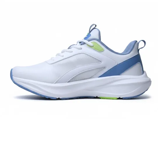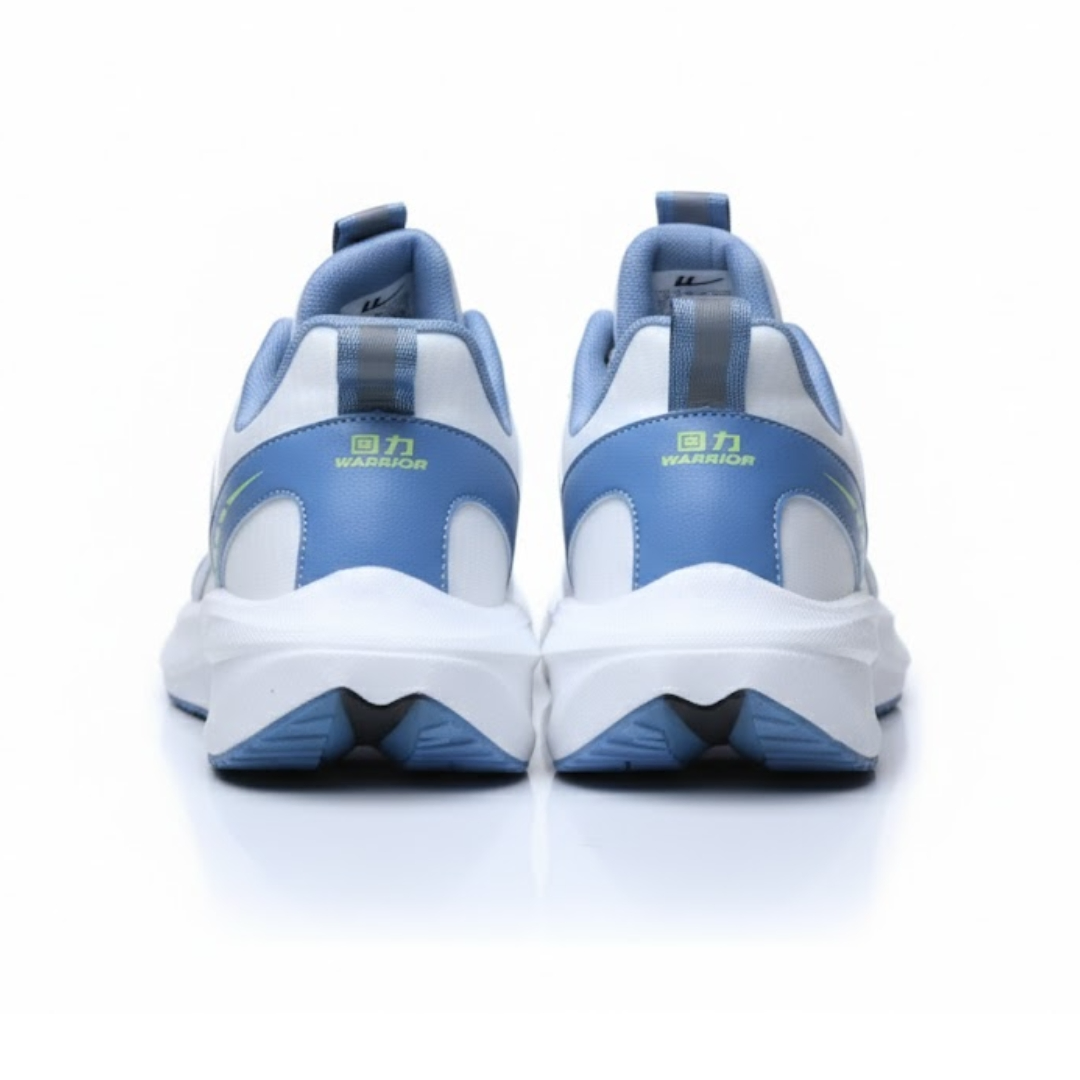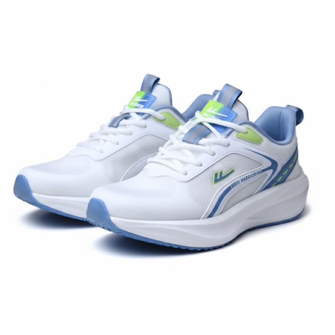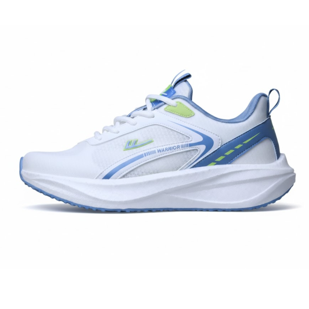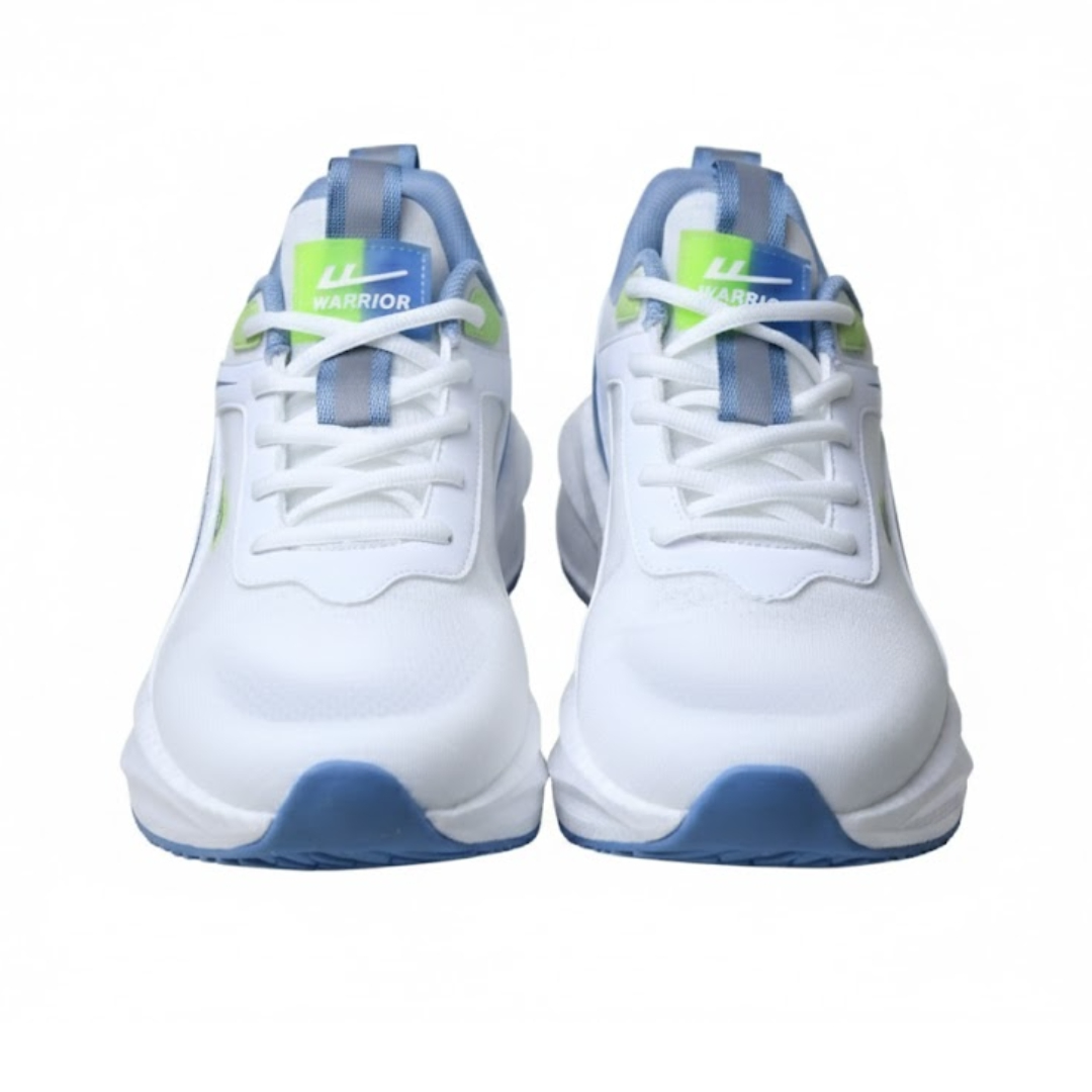 Add a pop of color to every step with the Warrior White Sneakers, featuring a fresh combination of white, blue, and lime green. The main body and laces are crisp white, complemented by light blue accents on the soles, eyelets, and tongue. The Warrior logo in lime green and blue adds a sporty and vibrant touch. Lightweight, comfortable, and durable, these sneakers are perfect for kids or teens for casual wear, running, or everyday adventures.