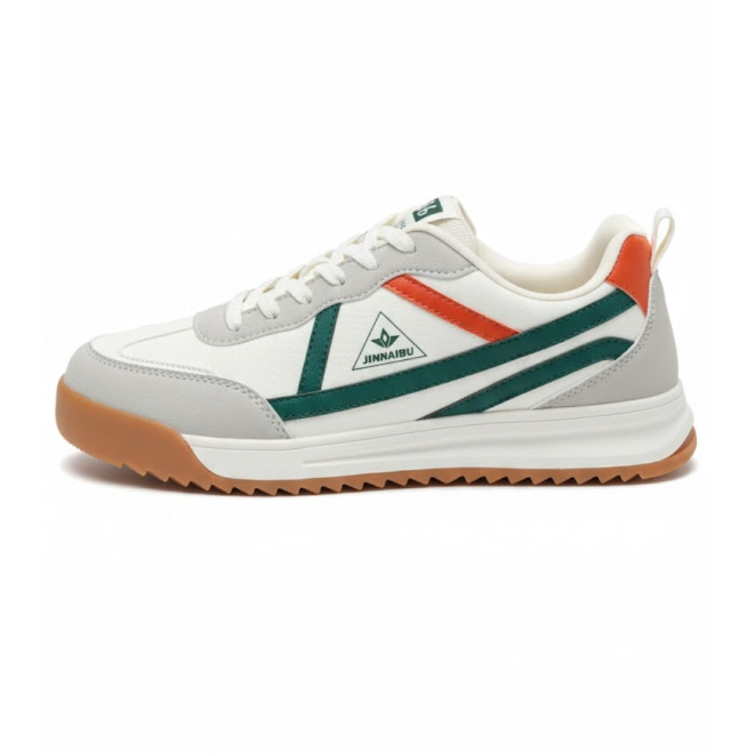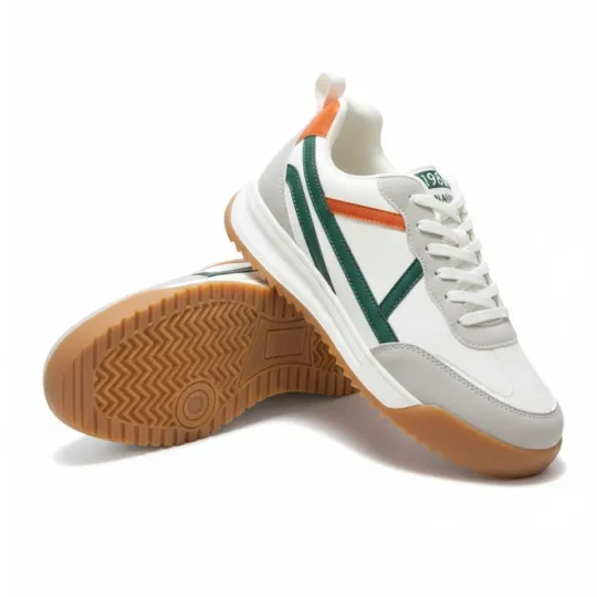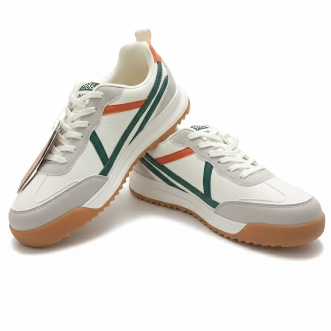 Add a touch of timeless style to your look with these White Sneakers featuring Red and Green stripes. Crafted for comfort and everyday wear, these sneakers pair effortlessly with jeans, joggers, or casual outfits. The crisp white upper is complemented by bold red and green side stripes, giving it a sporty yet elegant finish. Designed with a durable sole and lace-up closure, they offer all-day comfort and long-lasting performance — perfect for both men and women who appreciate simple, stylish design.