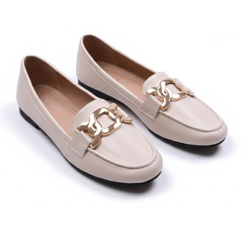 Crafted from premium leather, faux leather, or microfiber, they offer a refined finish with lasting durability. The signature metal chain detail across the upper adds a subtle statement touch, making them perfect for office wear, casual outings, or smart everyday styling.