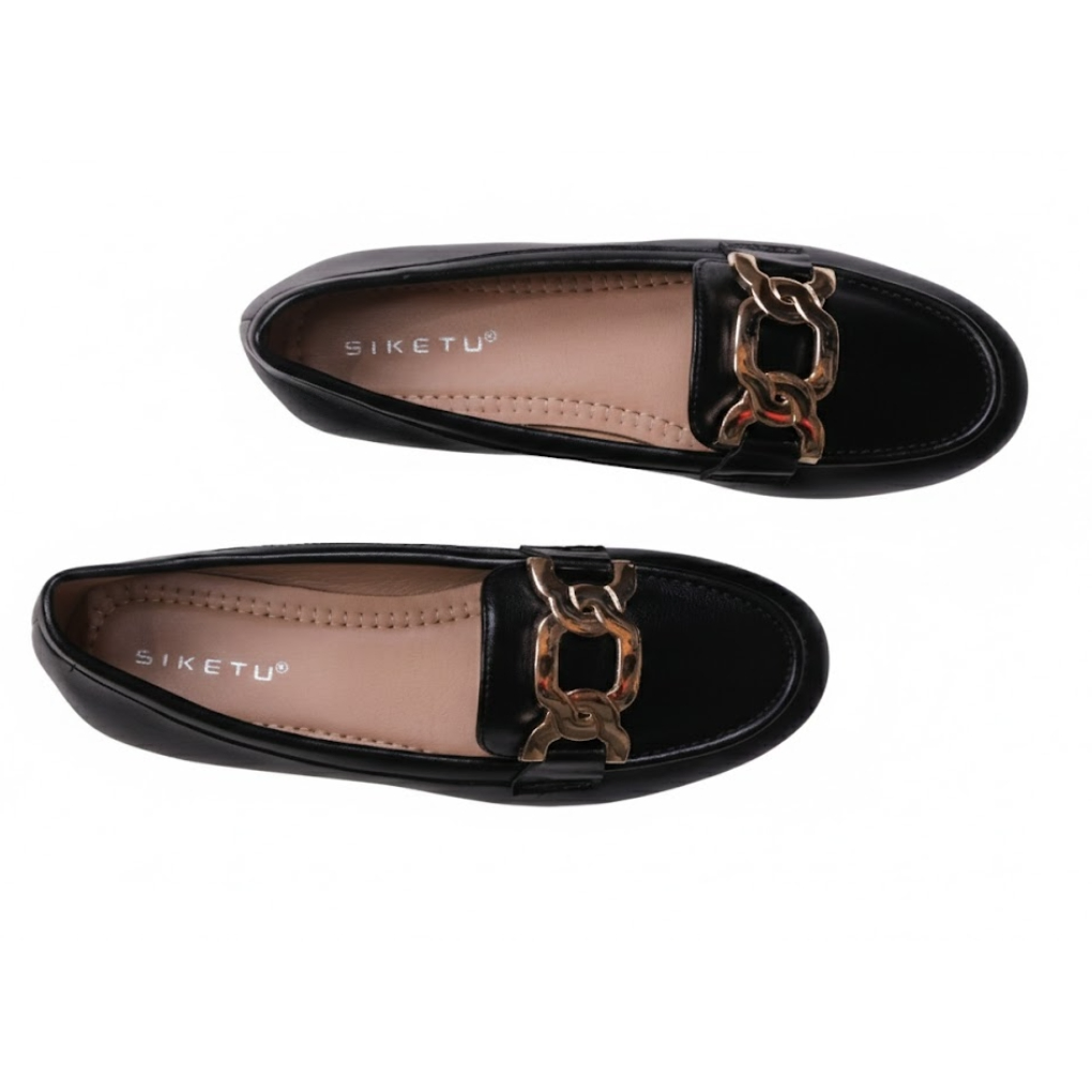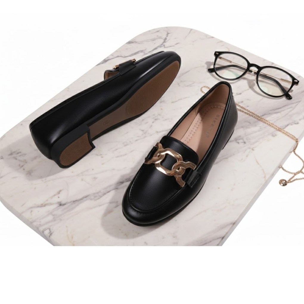Command attention with subtle sophistication in the Elite Club Luxe Metal-Accent Loafers – Black Edition. Crafted for the modern woman who values elegance and comfort, these premium flats feature a sleek black finish that exudes timeless luxury. The refined metal detail adds a touch of high-class allure, making them perfect for corporate settings, evening soirées, or smart-casual outings. Step out with confidence and poise in footwear designed for distinction.